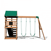 Disfruta de la sombra debajo de la cubierta cubierta de 3 pies de altura con 6 pies cuadrados de espacio de juego, o siente la brisa azotando tu cabello balanceándose en los dos columpios del cinturón.